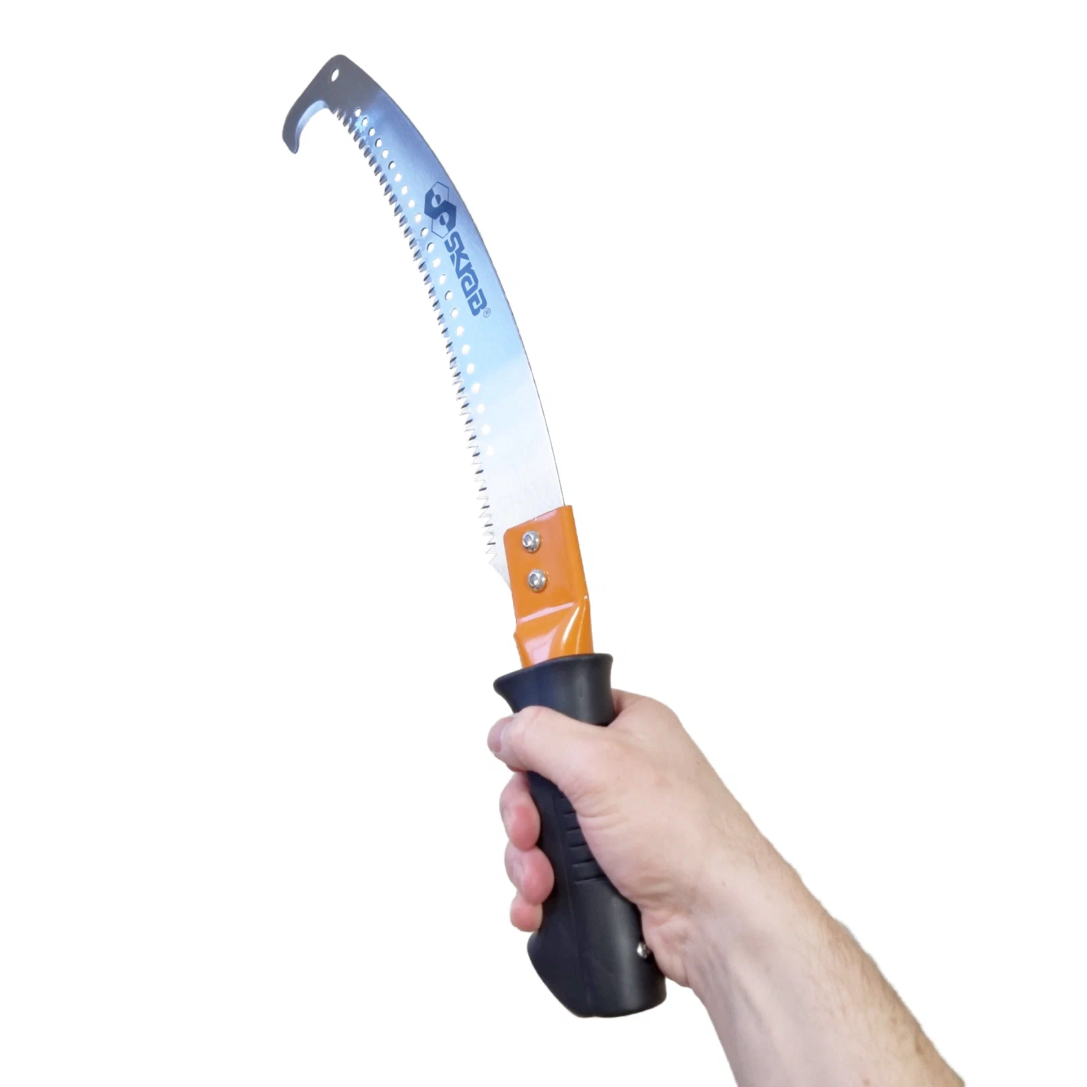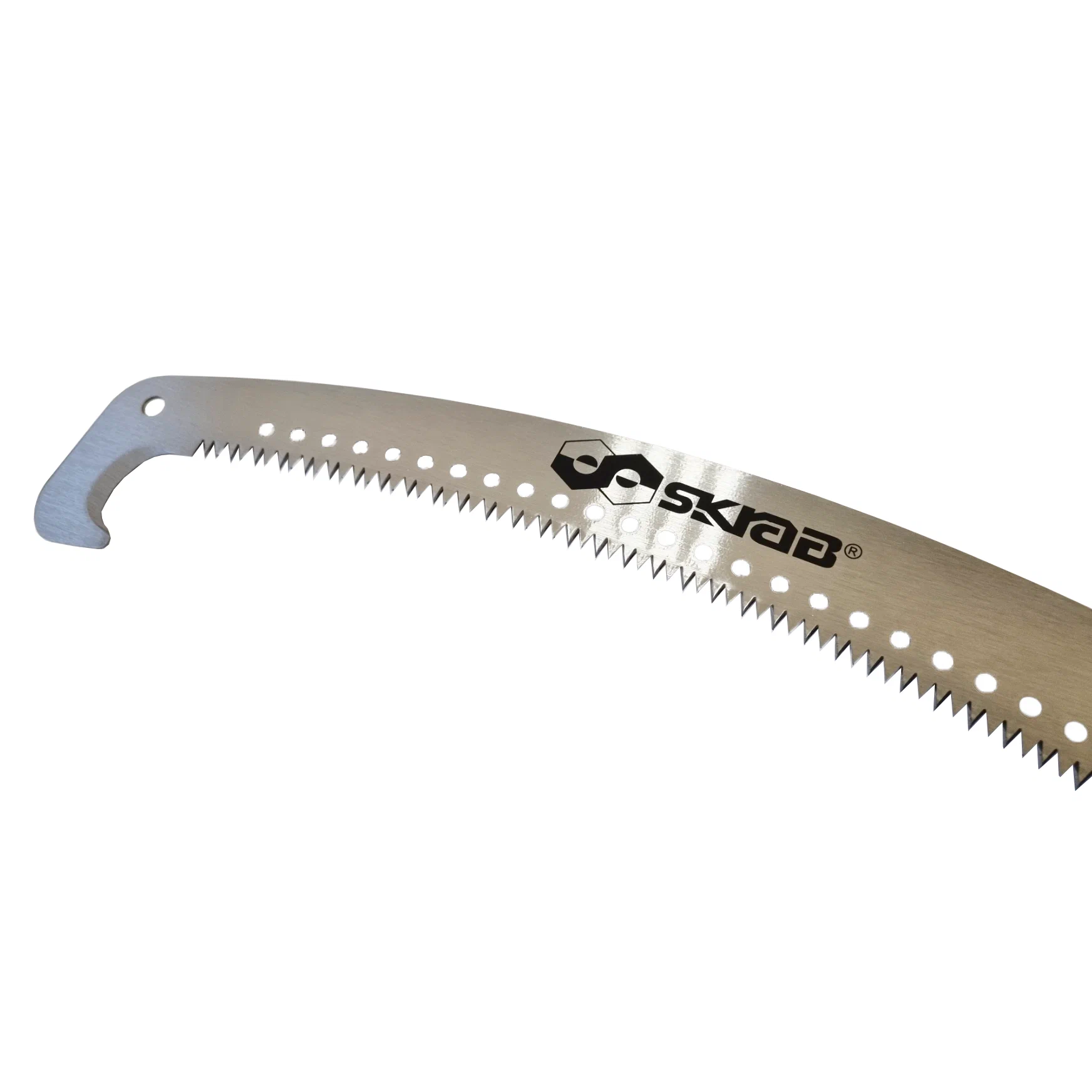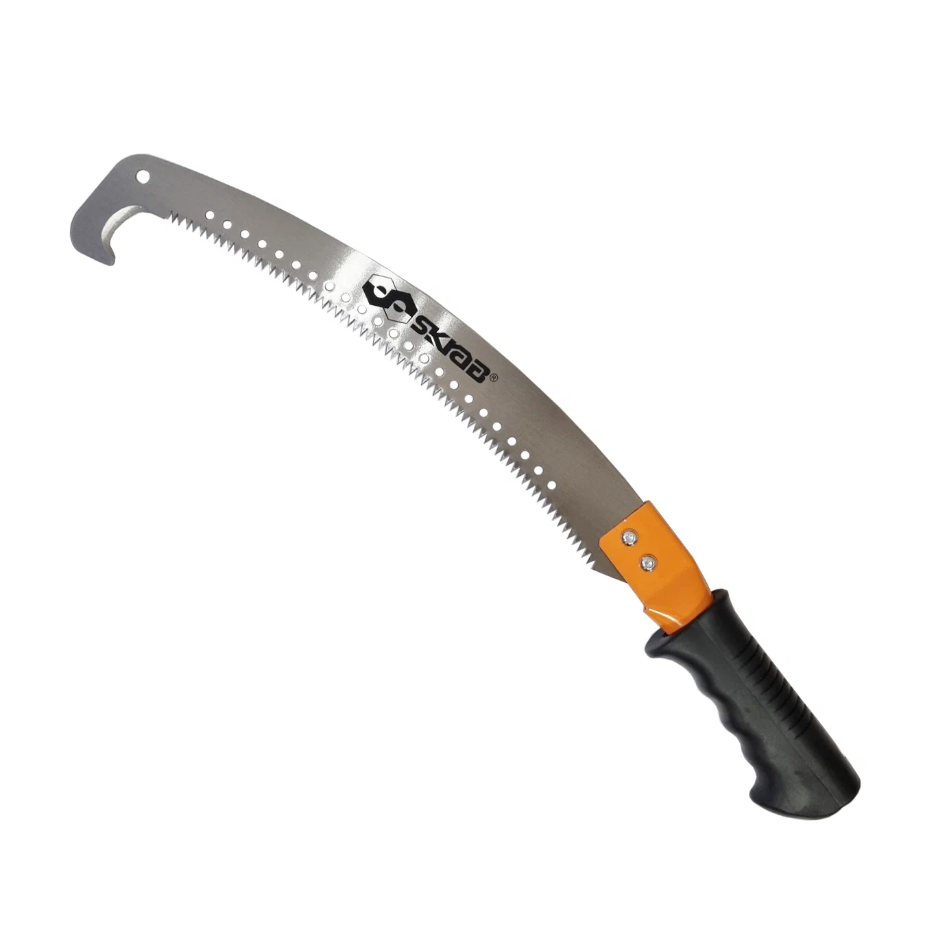 Садовая пила SKRAB 28153 применяется при обрезке садовых деревьев, при формировании их кроны. Для удобства отпиливания засохших (лишних) труднодоступных ветвей, находящихся на высоте, необходимо установить ножовку на штангу диаметром 26 мм. На окончании полотна расположен специальный крюк-ограничитель, предотвращающий соскальзывание режущего инструмента, позволяющий быстро, эффективно и безопасно производить подрезку деревьев. Благодаря специальной заточке острых, закаленных зубьев с переменным шагом, Вы быстро перепилите сук диаметром 10 - 15 см, не прилагая значительных усилий, получив ровный срез, необходимый для быстрого заживления дерева. Высоко углеродистая сталь позволяет использовать инструмент длительное время без необходимости повторной заточки и разводки зубьев.