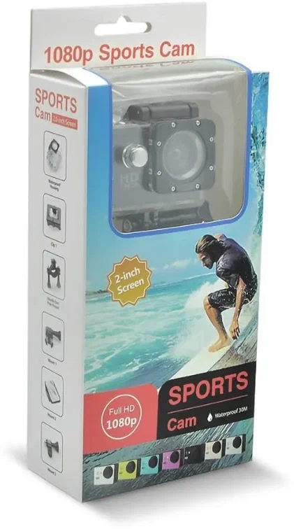 Новая экшен-камера HD Pro 1080P идеально подходит для HD-фильмов и фотографий в высоком разрешении с очень хорошим качеством изображения с 170° линзы. Экшн-камера очень похожа по размеру и характеристикам на Go PRO. Имеет большое количество аксессуаров, монтажных кронштейнов, штативов, лент и т. д. Устойчивая водонепроницаемость в воде составляет 30 метров. Интерфейс очень прост в использование, имеет меню на экране, что значительно облегчит выбор различных форматов видео или фотографий и многие другие параметры, такие как ISO, экспозиция, распознавание лиц, анти-вибрация, цвет (цвет, Sepia, B/N), баланс белого, режим съёмки, режим автомобиль.