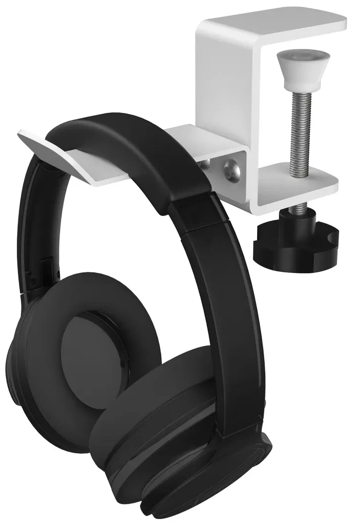 Держатель для наушников на струбцине / крючок для сумки или рюкзака на стол, цвет белый VR-101W