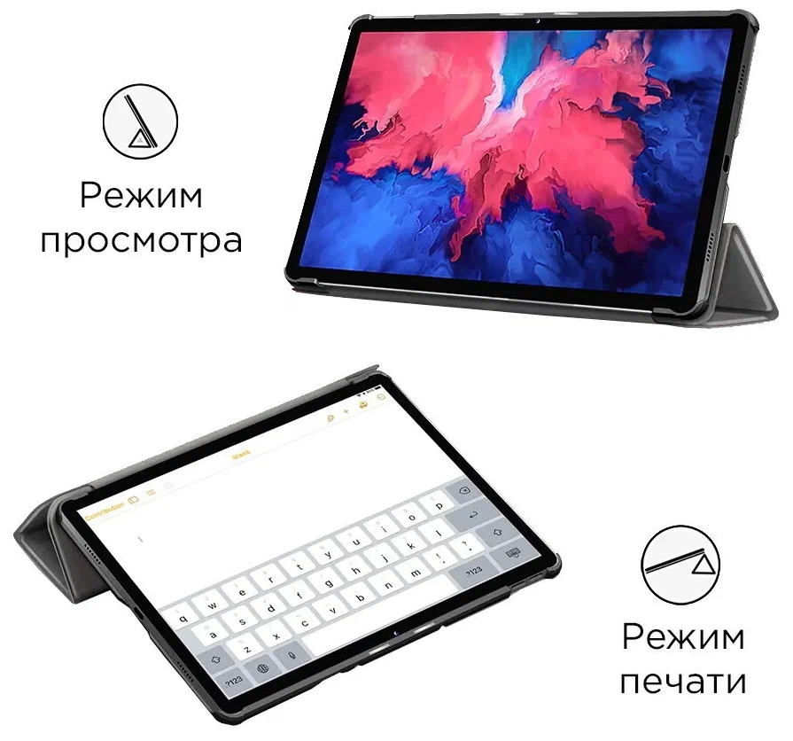 Крышка чехла выполнена из полиуретана, который имитирует натуральную кожу, приятной на ощупь, а внутренняя часть из мягкой микрофибры. Корпус чехла выполнен из твердого пластика, который приятно держать в руках. Также чехол снабжен усиленными углами, которые надежно защитят как корпус, так и дисплей планшета от царапин, потертостей, сколов и других механических повреждений. Одно из ключевых преимуществ, которое вы непременно оцените - возможность трансформировать чехол в подставку для планшета для просмотра видео, фильмов или работы на устройстве. Функция умный чехол - выполняет блокировку или разблокировку устройства путем закрытия и открытия обложки соответственно. Чехол имеет вырез для камеры и предоставляет доступ ко всем портам и кнопкам управления. Чехол оснащен магнитами, что помогает экономить время во время открытия и закрытия, при этом не позволяя чехлу самопроизвольно раскрываться. Выберите свой цвет под настроение, подчеркните свою индивидуальность в сочетании с максимальным удобством.