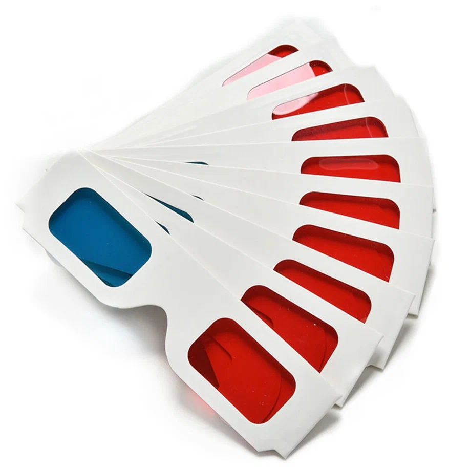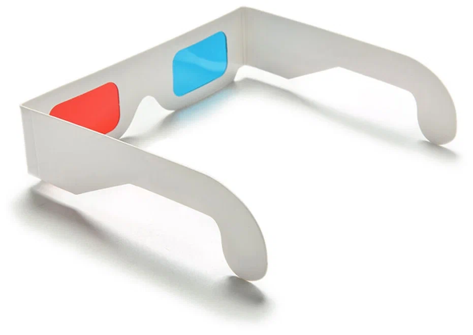 - Пассивные анаглифные 3D очки линзы красного и синего цвета.