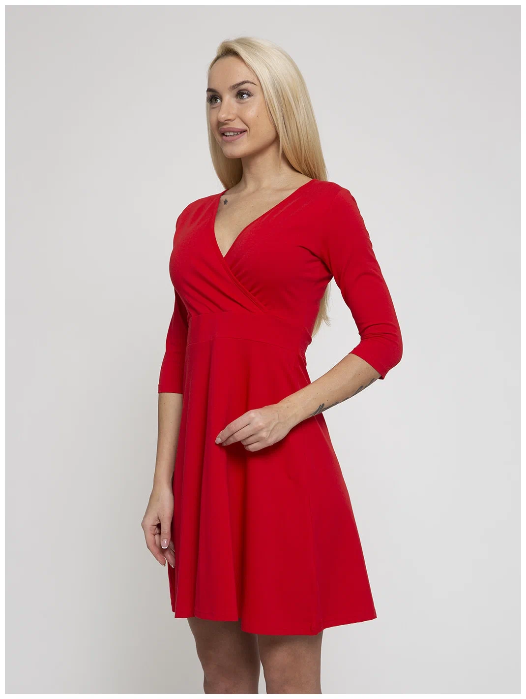 Платье с рукавом 3/4. Длиной до колена, из легкого, но плотного хлопкового трикотажа отлично подходит и для работы, и для отдыха. Элегантно приталенная и расклешенная к низу модель с V-образным вырезом на запах прекрасно подчеркивает достоинства женской фигуры. Платье очень комфортно в носке, и одновременно очень изящно.