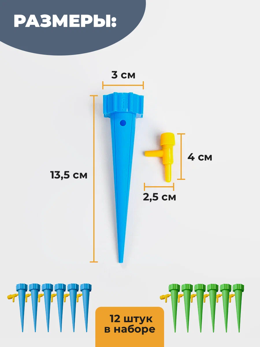 В комплекте: 12 насадок-конусов, 12 кранов. Размер насадки — 13,5х3 см.
