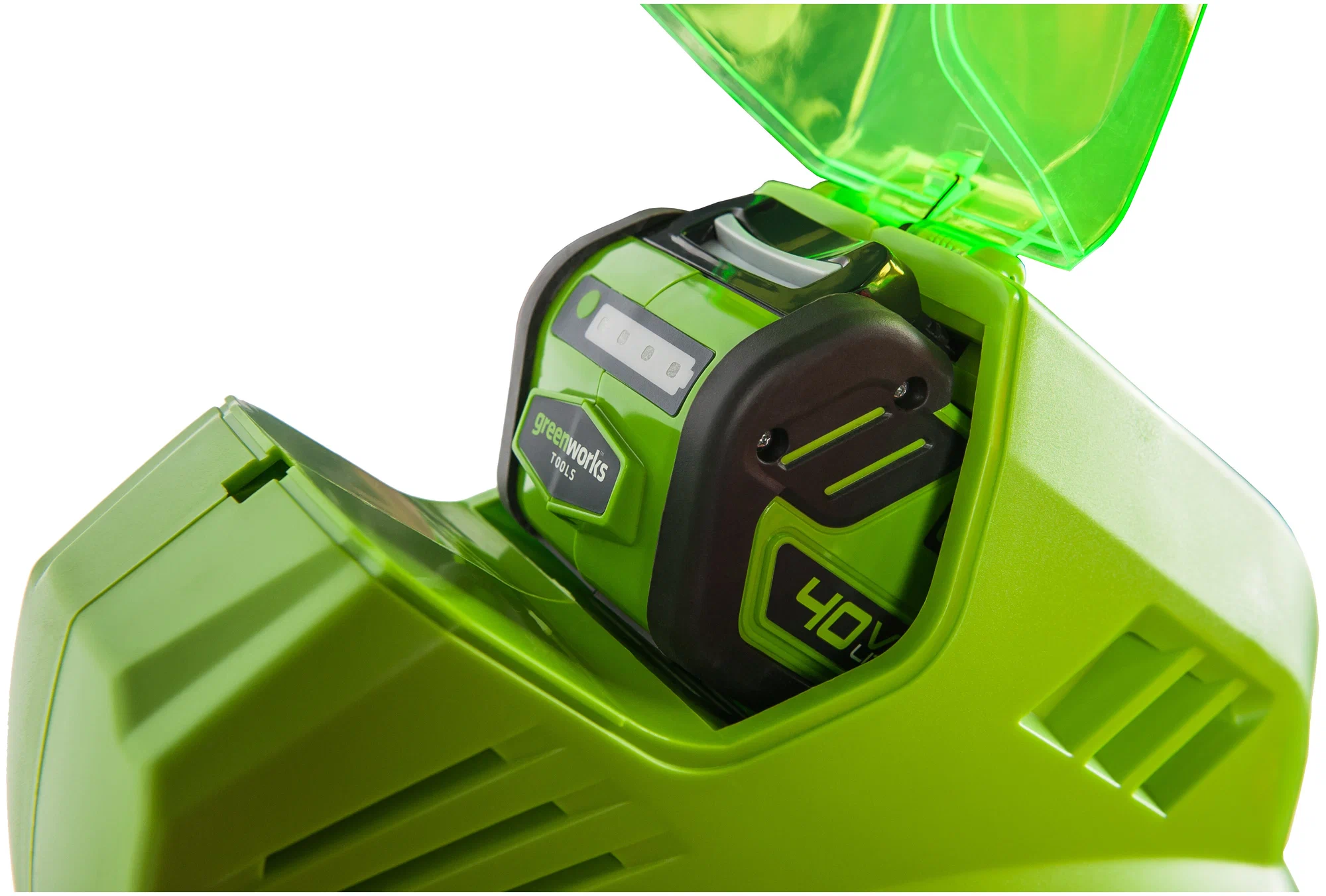 Максимальное время автономной работы - 20 минут от 4 Ач батареи. Безопасность работ обеспечит предохранитель от случайного включения. Культиватор работает от аккумуляторной батареи G-MAX 40V (2 А*ч или 4 А*ч, поставляется отдельно), которую можно использовать другими с устройствами линейки 40 вольт.