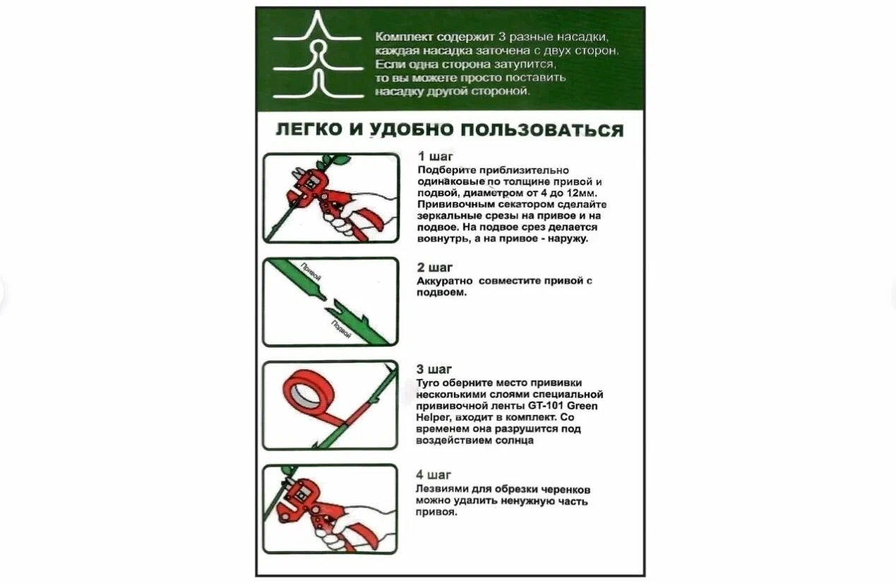 - ножом для отсекания черенков отрезать лишние части веток с привоя и подвоя.