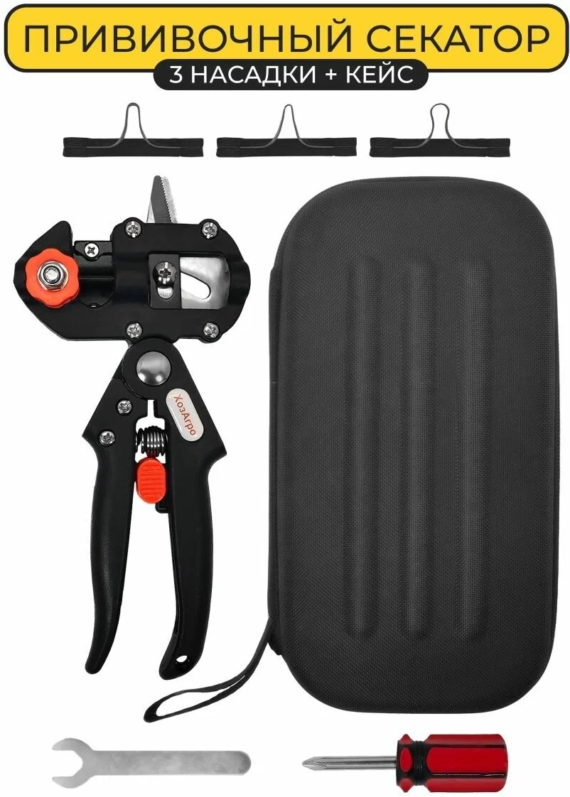 Cекатор садовый прививочный для деревьев и кустов в кейсе + набор ножей