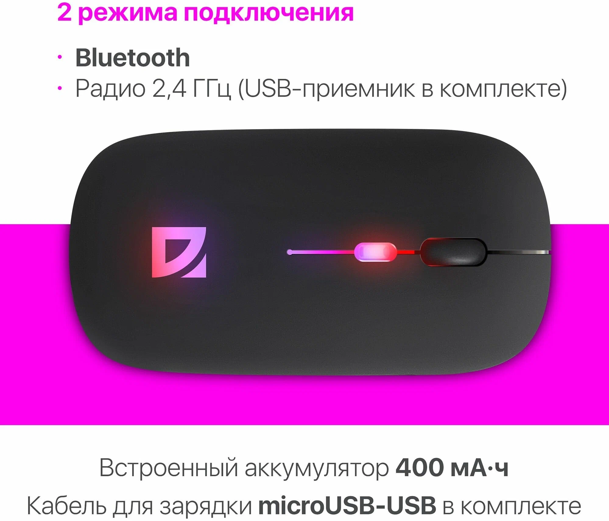 Возможно использование с большим количеством устройств: компьютерная мышь Дефендер совместима с телефоном, компьютером, ноутбуком, тв-приставкой, и поддерживает операционные системы: Android, MAC OS, Windows, Linux, IOS.