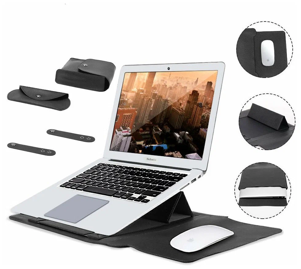 Чехол подставка для ноутбука Geek Gadgets (12, 13, 14 дюймов; черный; кожаный)
