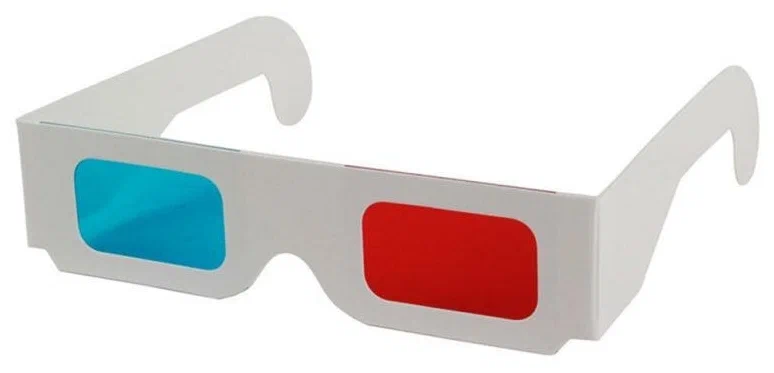 - Пассивные анаглифные 3D очки линзы красного и синего цвета.