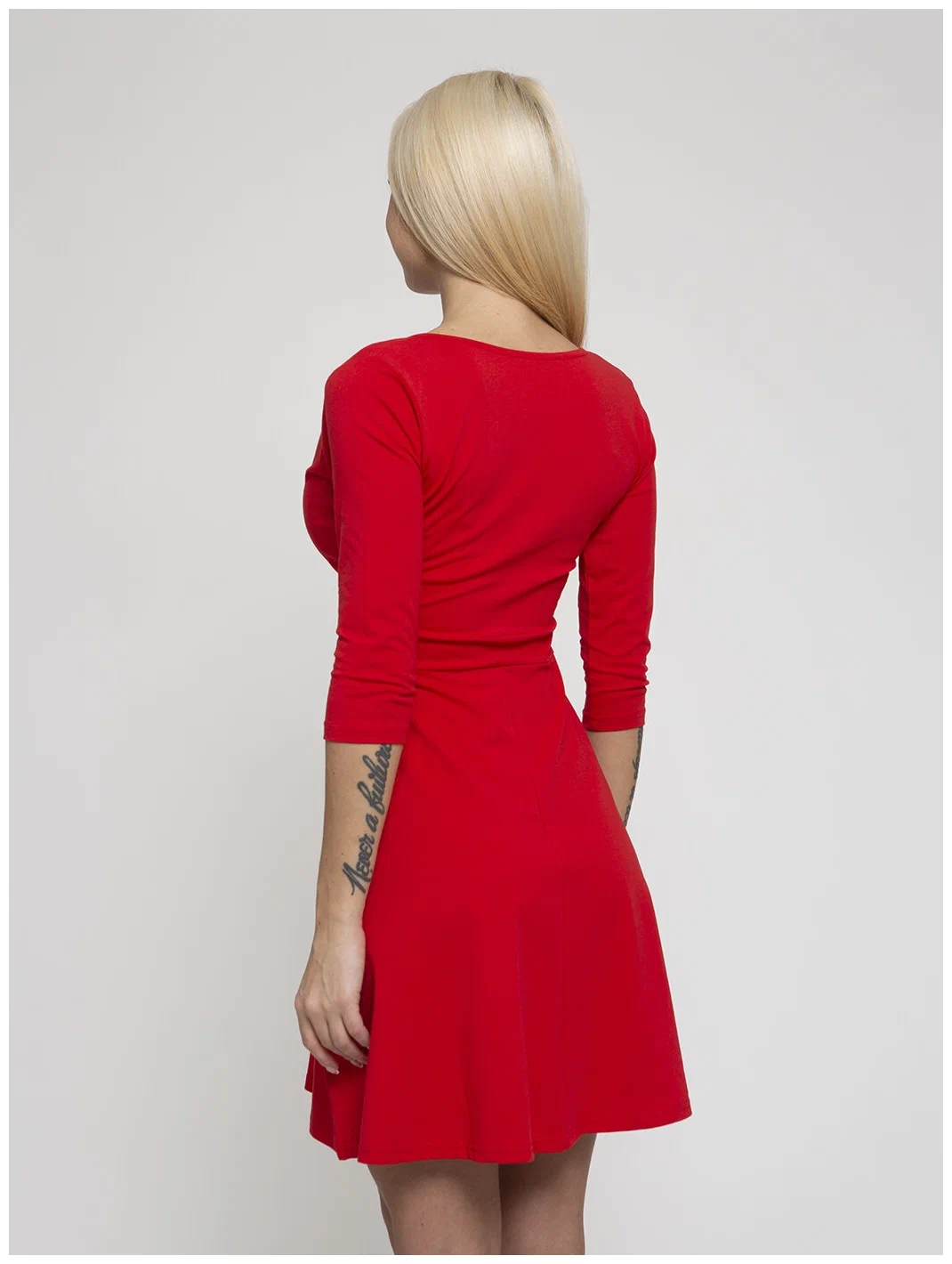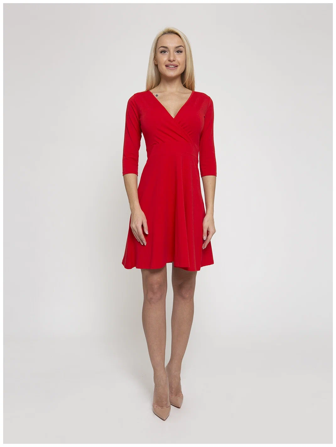 Платье с рукавом 3/4. Длиной до колена, из легкого, но плотного хлопкового трикотажа отлично подходит и для работы, и для отдыха. Элегантно приталенная и расклешенная к низу модель с V-образным вырезом на запах прекрасно подчеркивает достоинства женской фигуры. Платье очень комфортно в носке, и одновременно очень изящно.