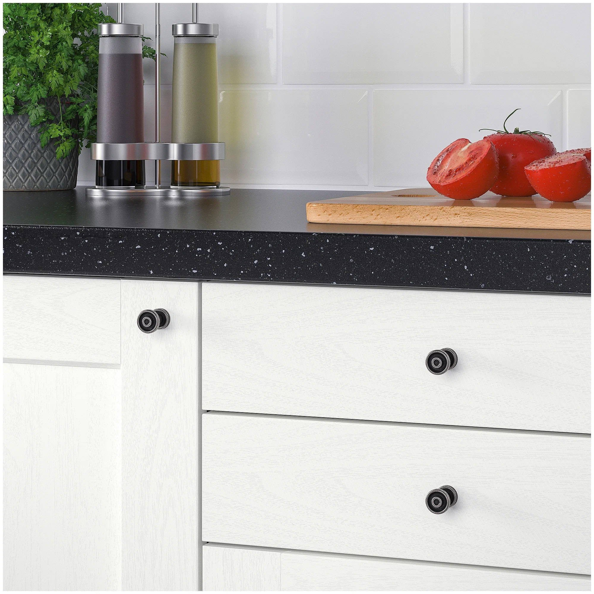 Мебельные ручки — это завершающий штрих вашего интерьера; деталь, от которой во многом зависит стиль. Круглые ручки СКРУВСХУЛЬТ с антрацитовой отделкой помогут оформить кухню под старину.