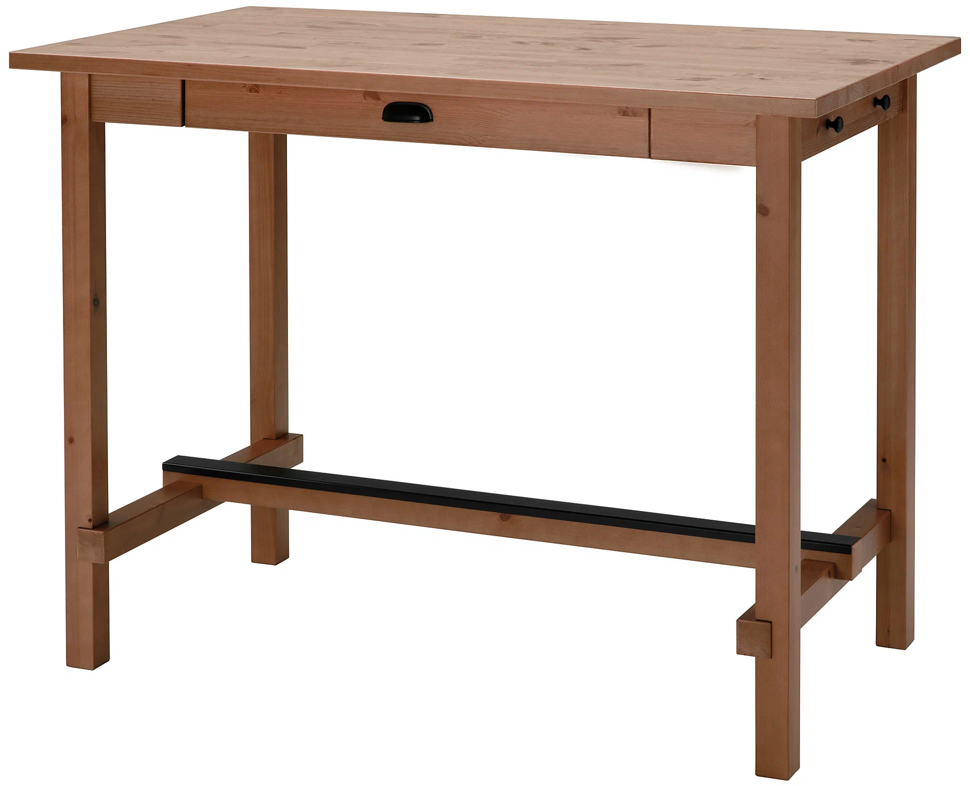 Столешница барного стол НОРДВИКЕН расположена на комфортной высоте. Ящик и два крючка по бокам позволяют разместить все необходимое под рукой. Прекрасное решение дополнить стол барными стульями этой серии.