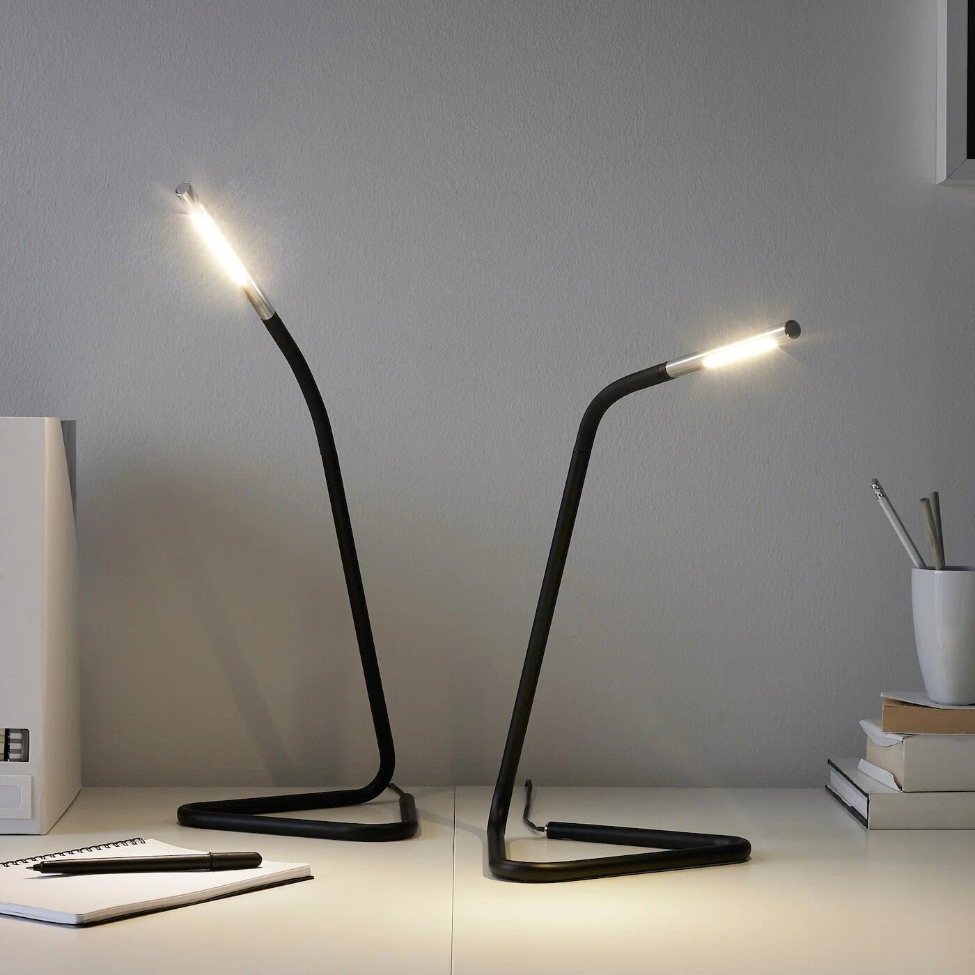 Вы можете заряжать лампу через USB-порт вашего компьютера и направлять свет как вверх, так и вниз. Лампа оригинального дизайна изготовлена из гнутой металлической трубки, очень компактна и минималистична. Удобно со всех сторон!