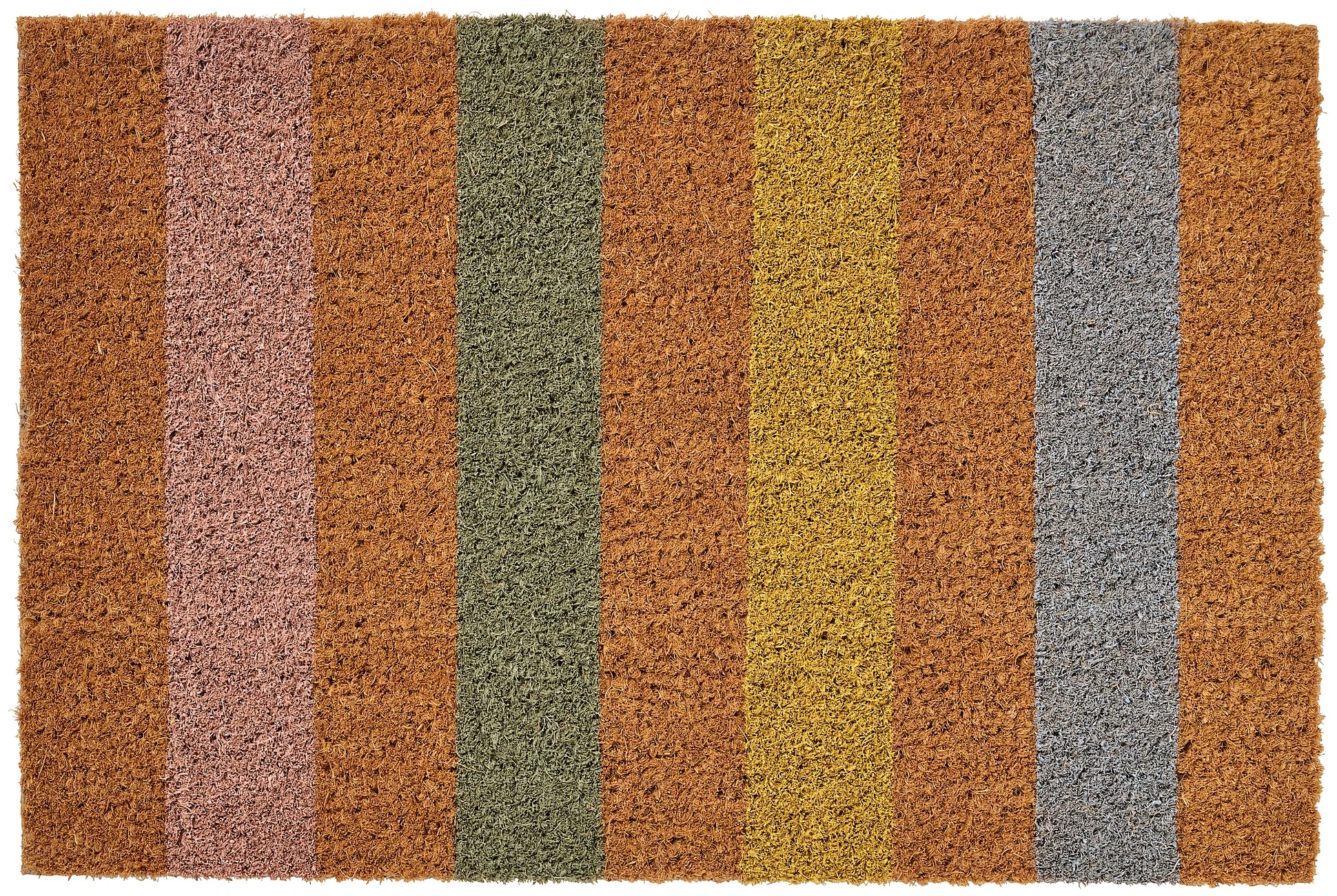 Благодаря этому яркому полосатому коврику ваша прихожая будет выглядеть очень приветливо. Прочное кокосовое волокно выдержит все испытания повседневного использования, а нескользящая подкладка фиксирует коврик на месте.